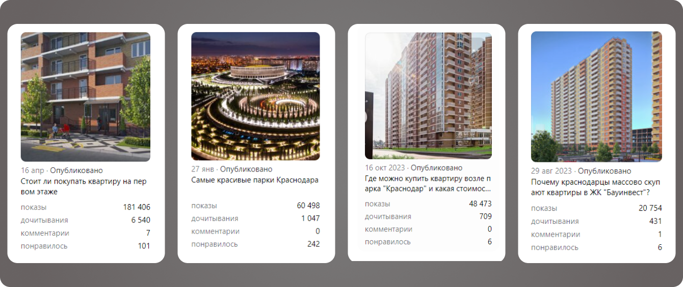 Основная задача заключалась в увеличении узнаваемости бренда СК Бауинвест и привлечении новой аудитории через канал компании в Яндекс.Дзен.